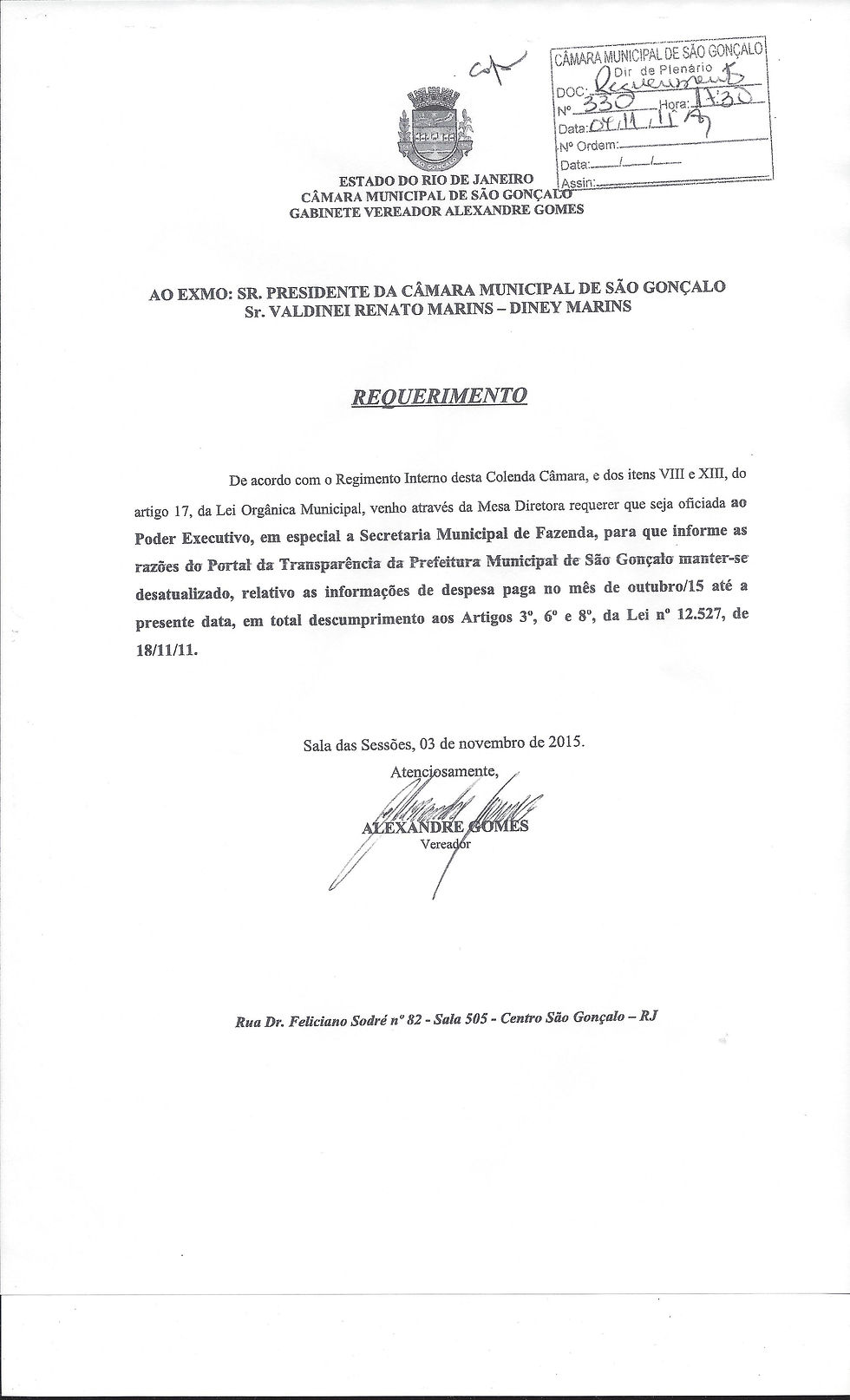 São Gonçalo possui sua Lei Orgãnica que é a nossa constituição municipal, a Carta Maior de princípios que devem reger o poder público. Existe na Lei Orgânica o artigo 17, o mais importante dos artigos que media as relações entre os poderes Legislativo e o Executivo. O art. 17 estabelece o que é competência privada da Câmara, entre eles “solicitar ao Prefeito, aos Secretários e aos órgãos da administração Indireta informações sobre assuntos referentes à administração Pública, importando em responsabilidade o desentendimento ao prazo estabelecido, sem justa causa”.