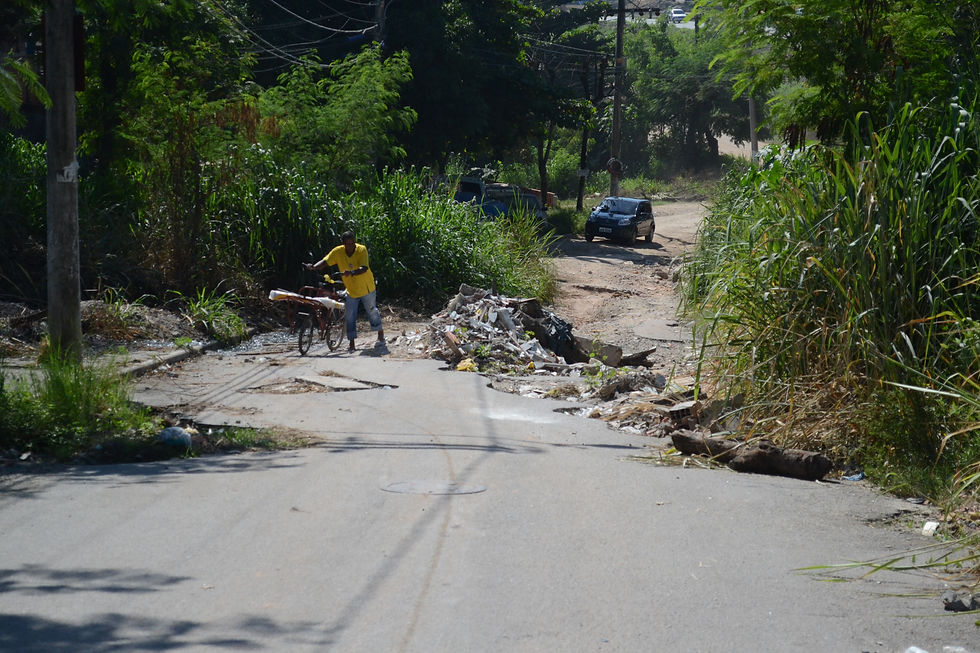 Já na Avenida Prefeito Gilberto Antunes, Marambaia, São Gonçalo, avenida paralela à Rodovia RJ-104, moradores reclamam do abandono. Falta iluminação, segurança, rede de esgoto, asfalto e o acesso na Avenida foi interrompido por uma cratera, onde se acumulou lixo e um enorme matagal que impossibilita a passagem dos veículos.