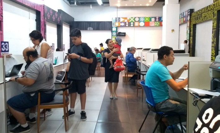 Em relação ao atendimento, não houve reclamações. O processo de atendimento dura em torno de 10 minutos. Algumas vezes demorando mais por pessoas chegarem com várias inscrições por ter mais de um imóvel e/ou taxa para resolver. Quem chega ao local passa por uma triagem no 2º andar, onde são distribuídas as senhas, e segue para as mesas de atendimento, com 58 guichês disponíveis, no 3º andar.
