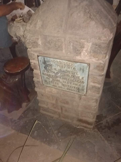 Em suma, sabe-se que, naquele tempo, tão logo a energia elétrica chegou às outras regiões, construíram um marco feito de concreto e metal por causa dessa proeza da modernidade. Hoje o tal marco com a placa comemorativa do evento se encontra dentro de um antigo armazém ou padaria, não sei ao certo o gênero do estabelecimento, lá no Largo da Ideia, datado de julho de 1950, na Estrada José de Souza Porto.